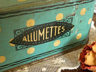 ブルーフォンセ(ダークブルー)のオーバルの中にはフッシュアイで見たようなフォルムのAllumettes(アリュ