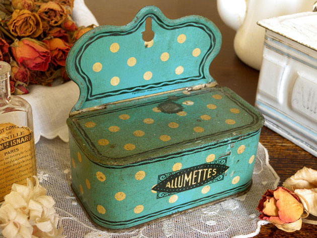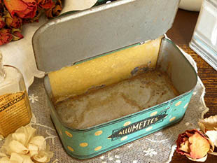 トール(ブリキ)製のブルー&イヴォワールポワアリュメットボワットです。フェールエンバール社はキュイ