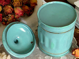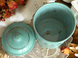 ポです。こちらは超レアなテュルコワーズ(トルコ石)のような色合いの高く盛り上がったフタの付いたPates