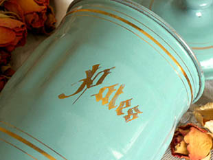 おそらく1930年代にフランスで製造されたエマイユ(ホウロウ)製のテュルコワーズ&オールパッツエマイユ