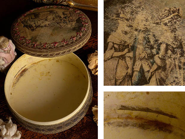フタのイラストに少し色焼けや剥がれがありますがきれいです。ロココリュバンに色褪せが少なくとてもきれいです。ブランフォンセの織物の布地にほつれや破れはなくとてもきれいです。写真のように本体の中に少し汚れとブランフォンセの破れたエティケットが少し残っています。その他、多少の傷みや汚れなどありますが布地の剥がれや壊れはなくとても状態が良くきれいで、Good Conditionです。
