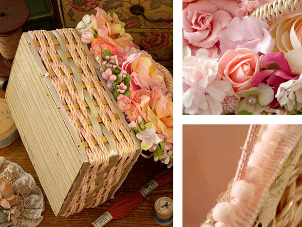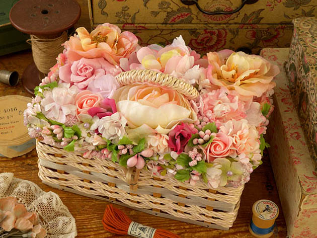 ■ot-a01093 Flowers Sewing Basket ローズ&カメリアフラワーズ・ピンクソーイングバスケット